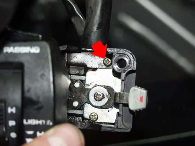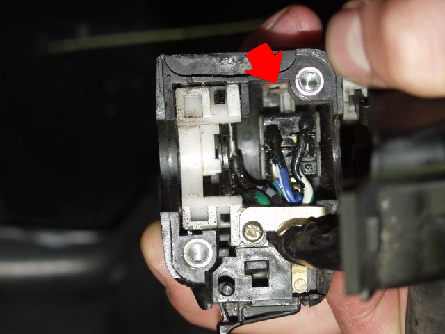 ABER..! müssen wir in diesem Fall nicht! Einfach oben am Pfeil reichlich WD40 hinsprühen und den Fernlichtschalter häufig betätigen, dass das Öl durch den Schalter läuft. Dies solange