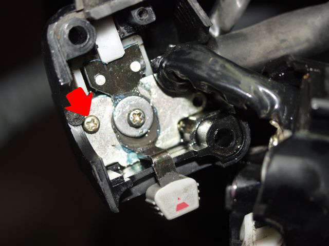 Mann erkennt jetzt auch warum die mittlere Schraube nicht gelöst werden muß (darf). Die ist nämlich die Achse für den Schalter und hält sonst nichts.